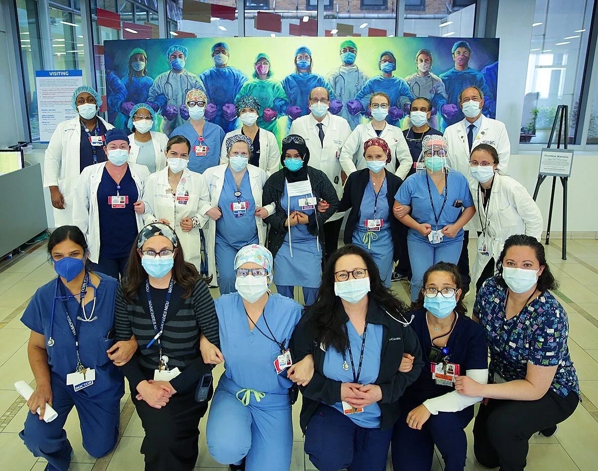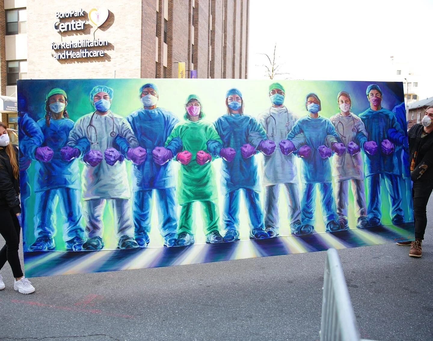 On April 21, 2020, our painting began it's moving tour of hospitals around New York. We are happy to announce that 'Frontline Warriors' is now on view at Maimonides Medical Center in Brooklyn, NY.